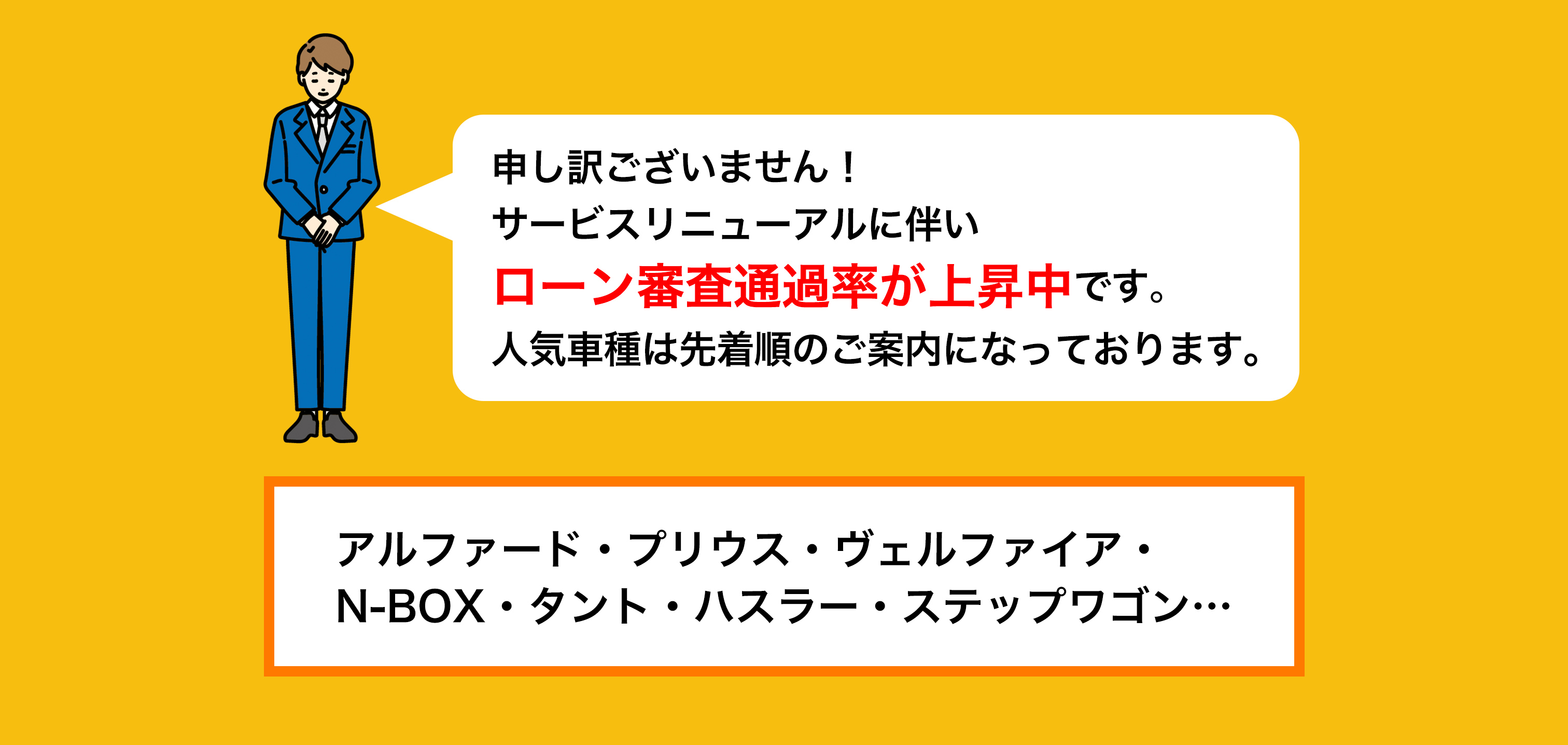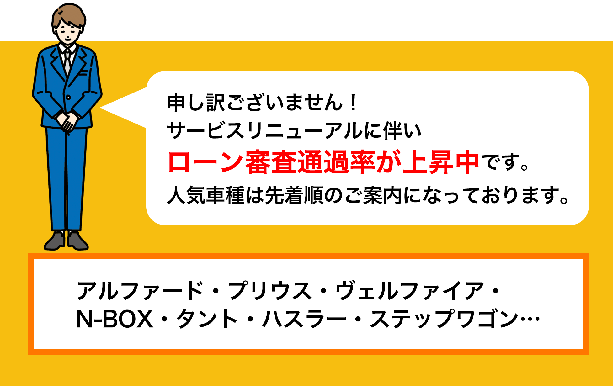 注文販売なので、お客様に自由に車を選んでいただけます。